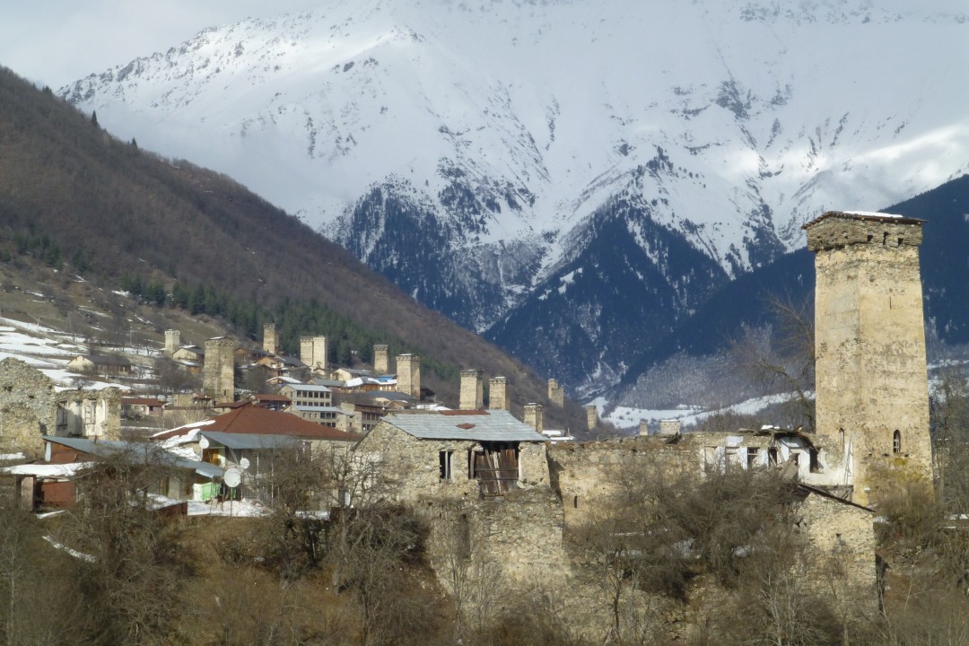 Unten, in Mestia, der auf 1500 Meter gelegenen Hauptstadt Swanetiens, herrscht Aufbruchsstimmung. Mestia ist eine Art San Gimignano des Kaukasus, nur deutlich spektakulärer, weil fast jedes zweite Haus einen steinernen, mittelalterlichen Wehrturm besitzt. Die Anlagen dienten als Schutz vor Lawinen und Erdrutschen, besonders aber als Rückzugsort, wenn man in Streit mit einem Nachbar-Clan kam. Das kam wohl oft vor, die Swanen waren ein kriegerisches Volk, hatten aber wegen der abgeschiedenen Lage keine äußeren Feinde. Auch in Mestia sind Kühe auf den Straßen, überall entstehen neue Gästehäuser, Cafés und Hotels, die Türme werden nachts beleuchtet; es gibt ein sehenswertes, zeitgemäßes Museum zur Geschichte Swanetiens und einen kleinen Flughafen mit modernem Empfangsgebäude.